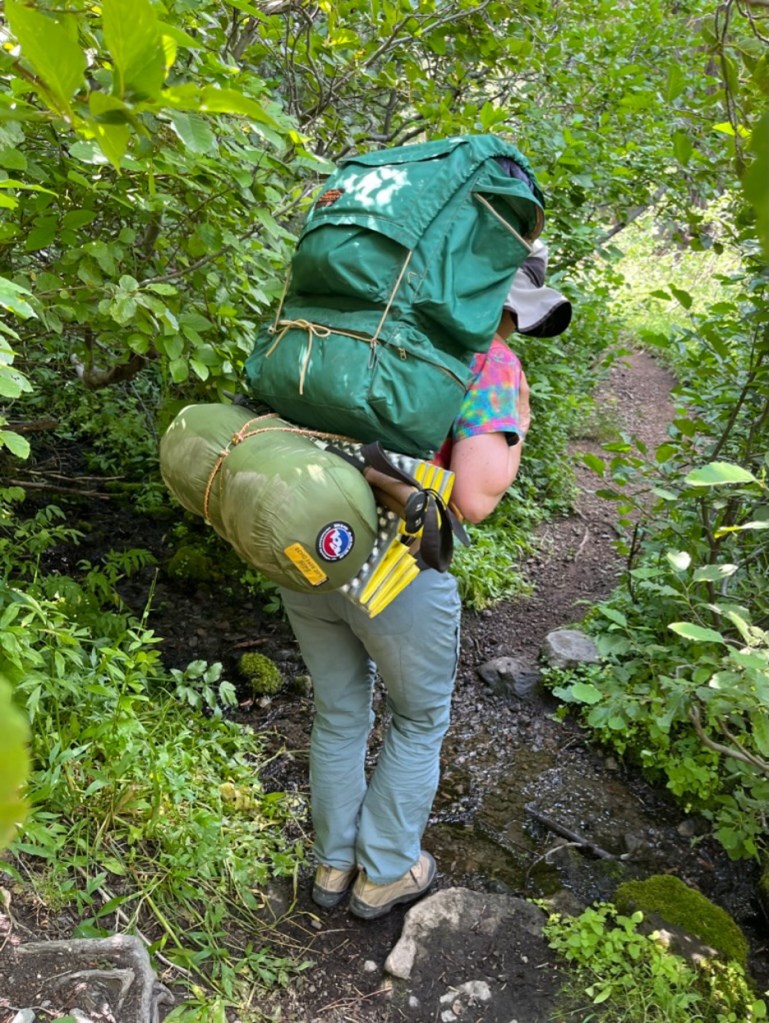 Needless to say, our 2023 outdoor gear and skills are a far cry from those of 1923 (more gear, fewer skills). In another post I’ll go into more detail about granddaddy’s very specific instructions for how to create a “bough bed” in the backcountry, I’d like to try it someday. But these days we’ve got waterproof lightweight tents and packs, inflatable sleeping pads and cozy warm sleeping bags. Even my mom’s vintage 1970s pack is very high tech compared to wool blankets, canvas tents, and oilcloth tarps. The only significant downgrade, I suppose, is that rather than having horses to carry all our stuff, we have to carry it ourselves!